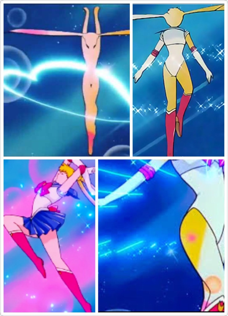 之前有提過我是初代變身胸針控。如果給我選的話,我最喜歡小兔在S代的變身,喜歡有一圈愛心在她腳邊轉,之後愛心圈化開成為光點,像流星一樣劃過畫面聚焦變出她的水手裙的那段畫面。