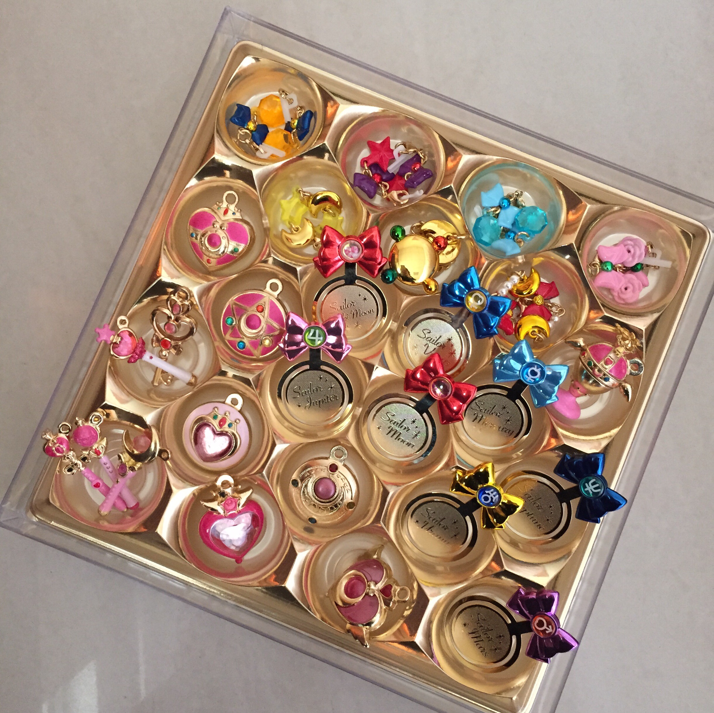 一盒一口氣裝了三個系列,金屬扭蛋的圓形變身鏡盒更是卡得嘟嘟好,我的美戰小物終於擺脫塞往幽暗衣櫃裡的命了~開心、開心、真是太開心了!🎉🎉👻