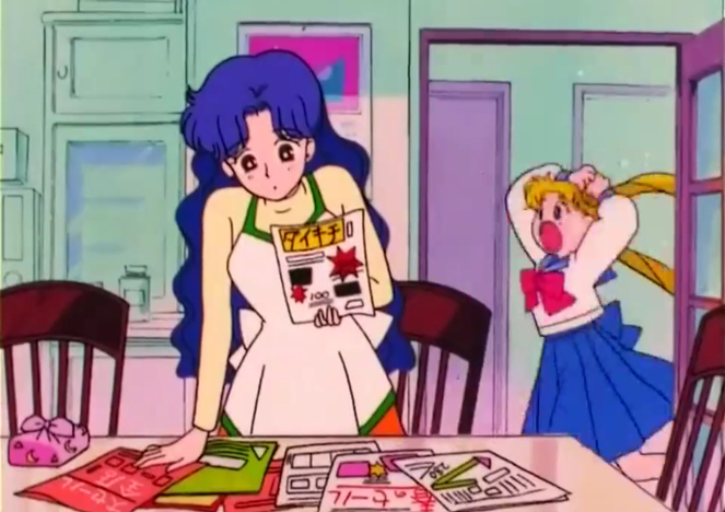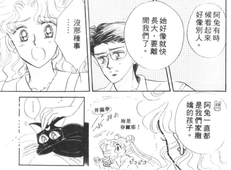 不過育子媽媽真的是很疼愛月野家的孩子。舊動畫SS代的第3集,小阿兔撞見育子媽媽在整理照片,湊過去看,育子媽媽在回味阿兔小時候的樣子呢!