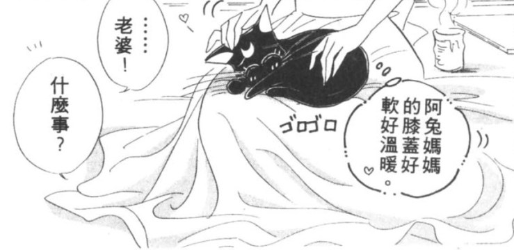 不知道育子媽媽知不知道阿兔的真實身分,不過有一次阿兔的爸爸感傷地跟育子媽媽說,覺得阿兔好像哪裡不一樣、好像快離開他們了。