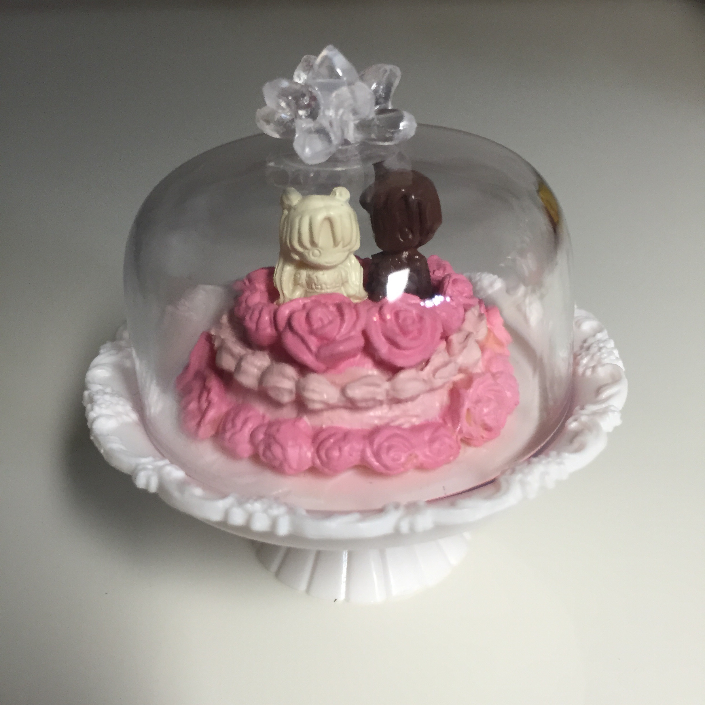蛋糕上兩人的小巧克力像,玻璃罩的把手是銀水晶!