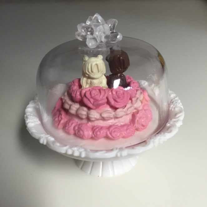 兩人的蛋糕組有附花瓶跟晚禮服假面的玫瑰,仔細看花瓶也是晚禮服的造型呀~