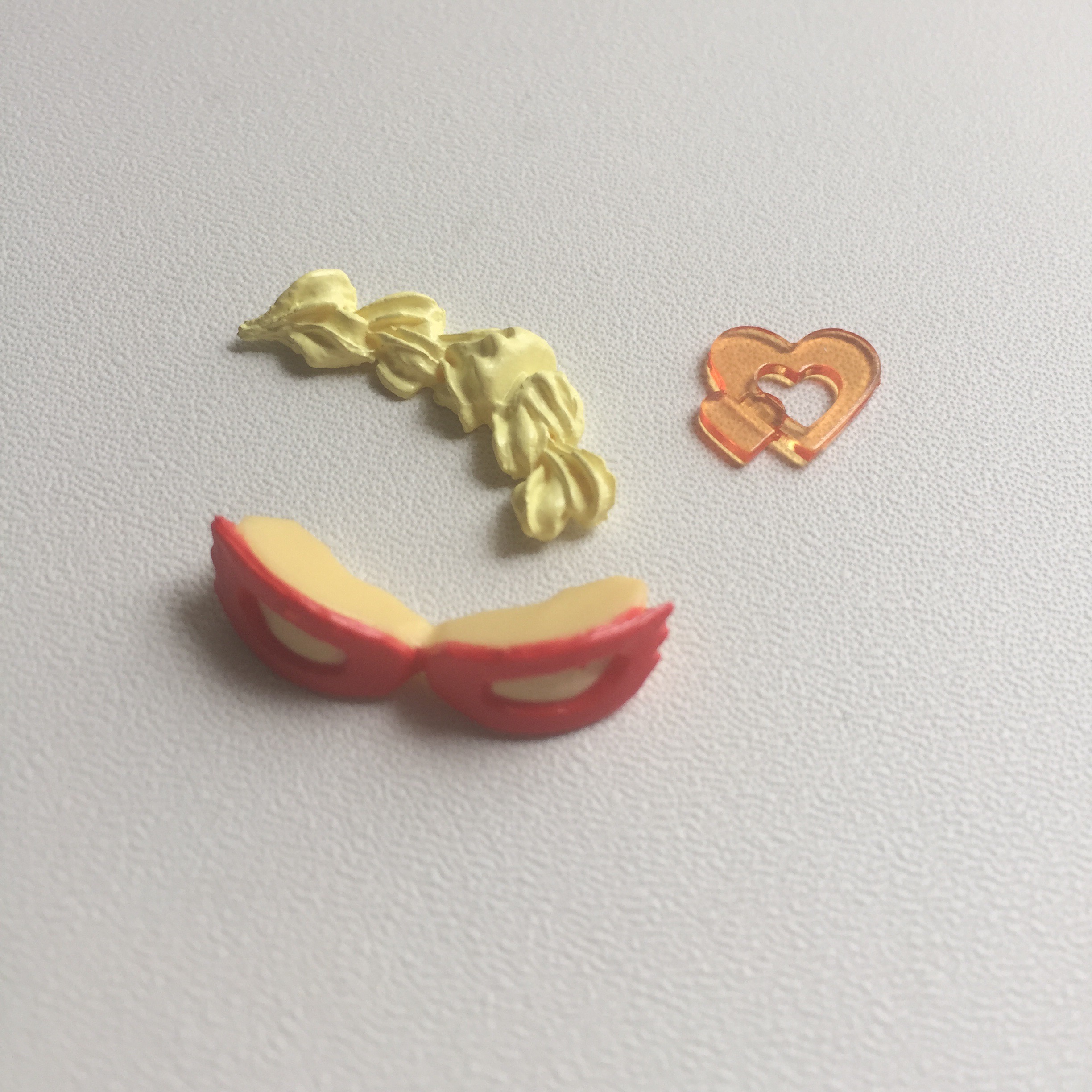 小阿兔跟露娜P頭上的草莓跟櫻桃太可愛啦!連吸管都少女心的捲了個愛心。叉子的造型是冥王星給小阿兔的時空之鑰。