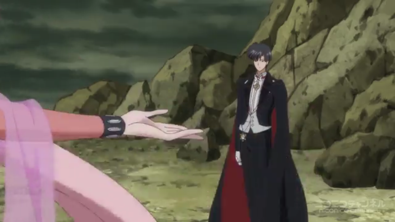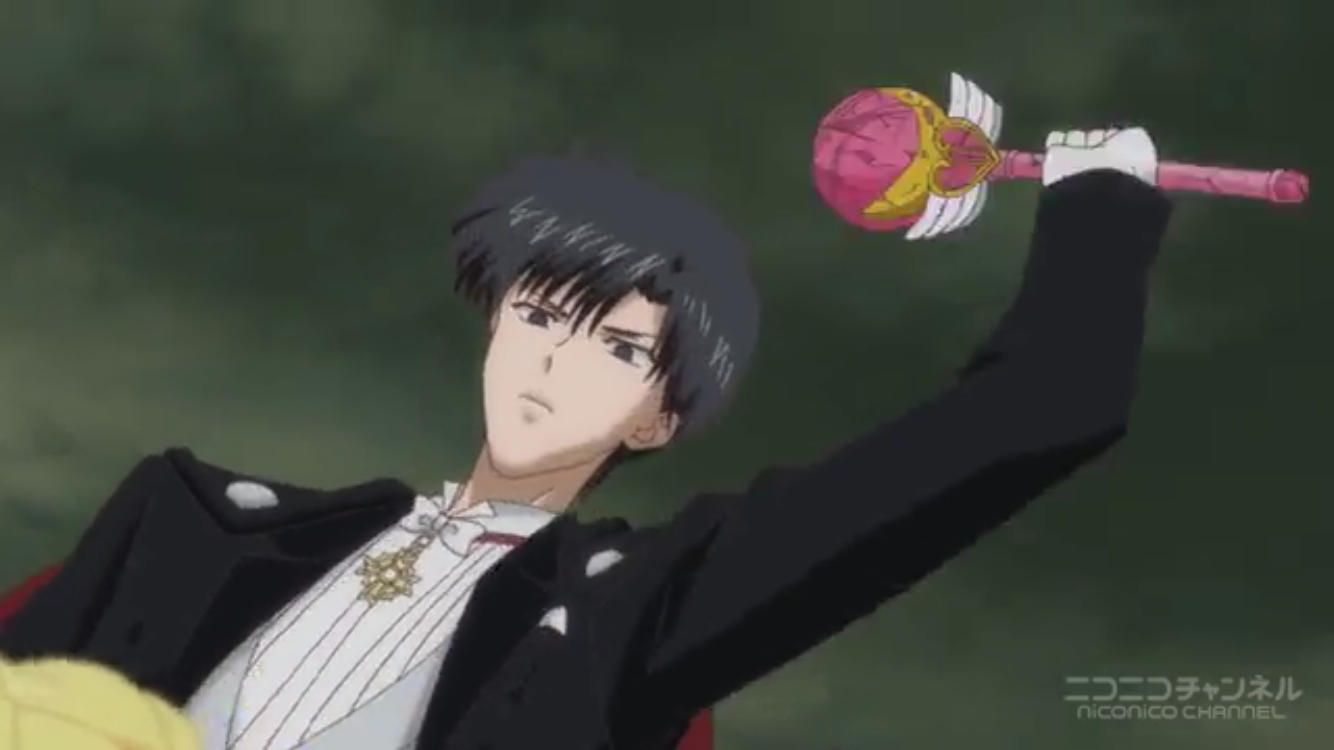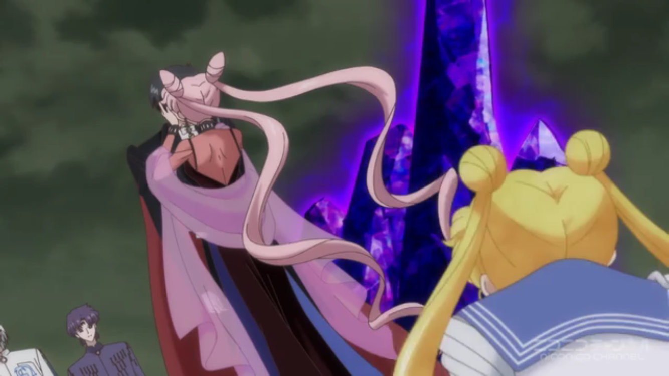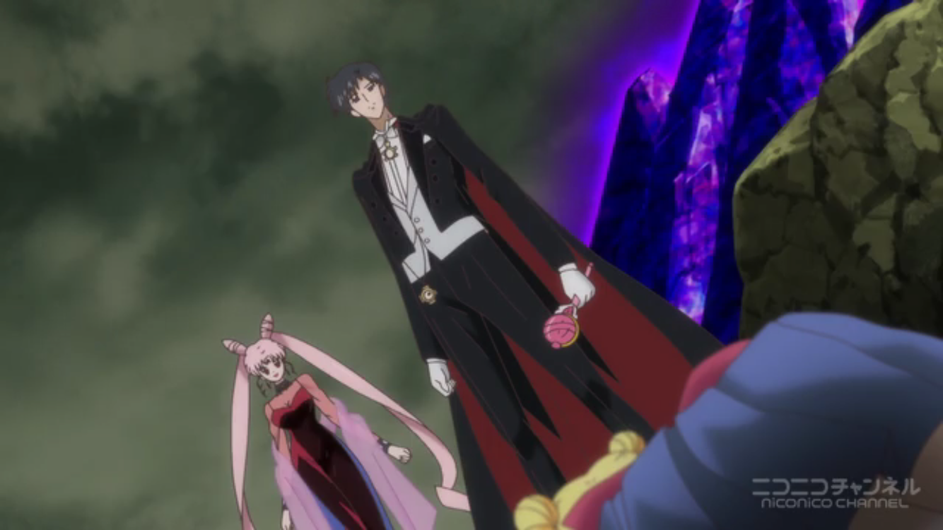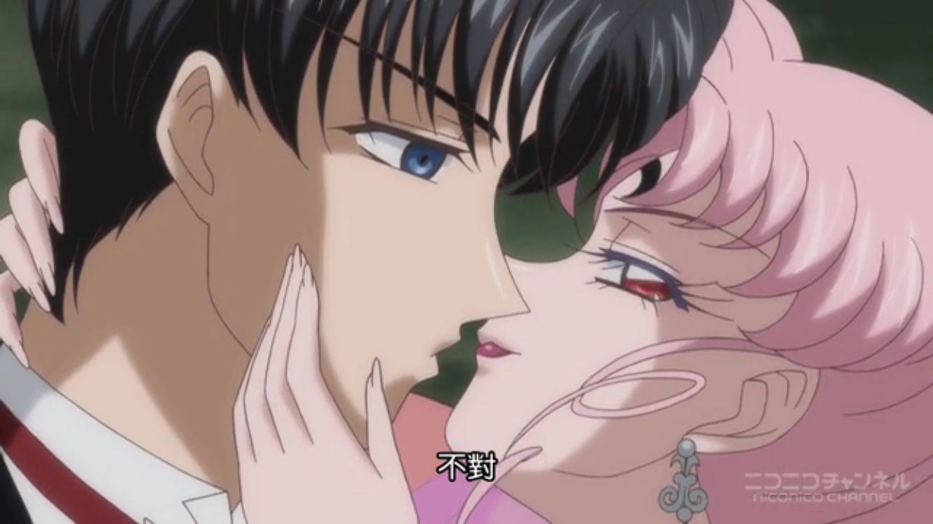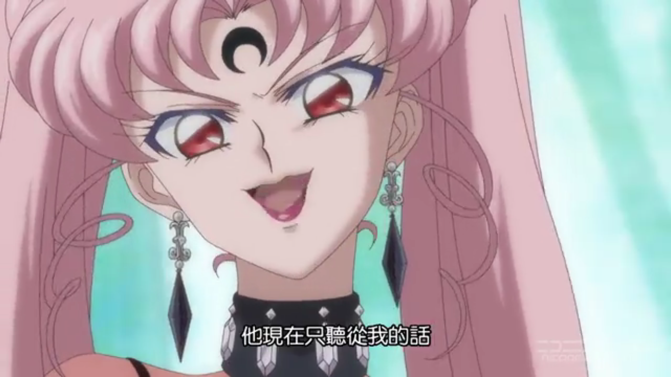 今天的重頭戲是黑暗淑女掌控晚禮服假面,用他與水手月亮之間的愛產生的女王權杖棒打水手月亮,讓水手月亮飽受同時失去小小兔跟小衛的雙重折磨,最後水手月亮也精神崩潰,跪倒在黑暗淑女面前,由晚禮服假面親手拔掉她的變身鏡盒,呈獻給黑暗淑女。