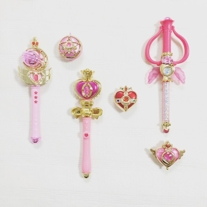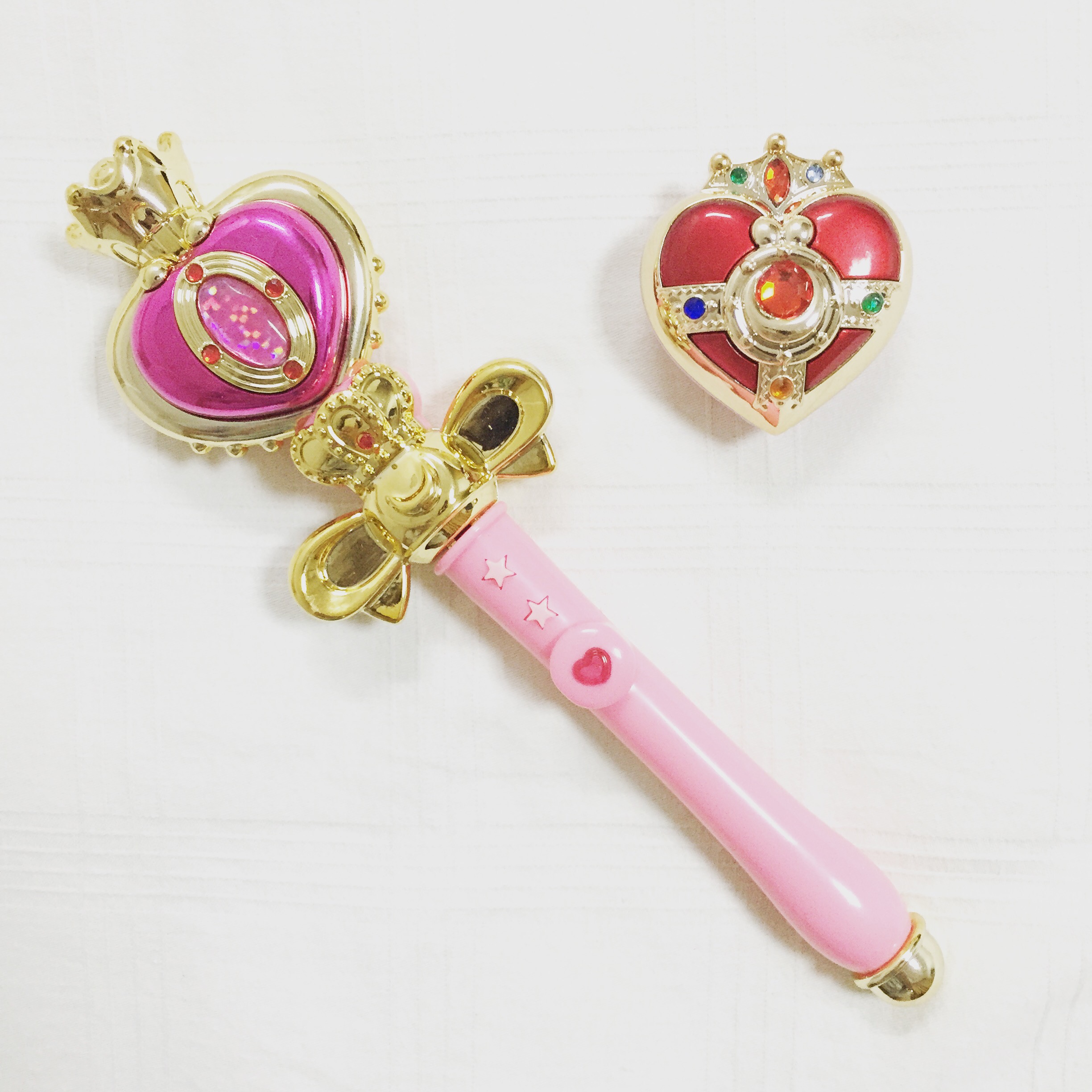 跟變身棒/武器扭蛋擺一起,尺寸還蠻搭的哩!所以很扼腕沒有收到露娜P,不然就可以跟小月亮的粉紅月棒合照了…