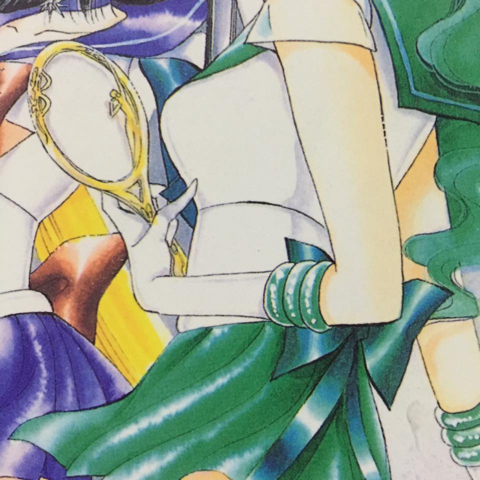 找了幾張原畫集中的深海鏡,就只有左上方的波紋不一樣,直子老師畫了兩個,這鏡子只有一個。究竟是直子老師那時為了整體設計好看些而改,還是當年這鏡子還有不同版本,這就不得而知了。