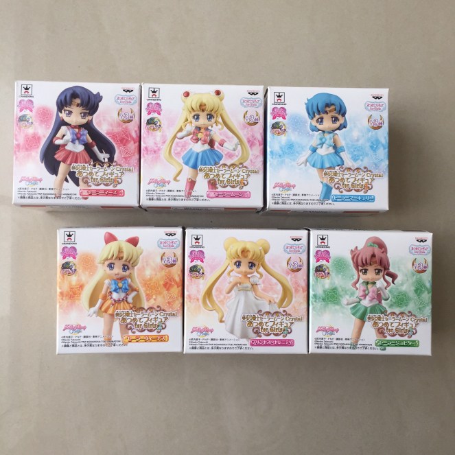 好,言歸正傳,一向對公仔興趣缺缺的我,這套眼鏡廠出品的crystal版小公仔一出宣傳圖,其實我也沒太在意。而且我之前抽一番賞有抽到同品牌的水星跟木星,我不是很喜歡這套的臉啦,不覺得很像小老鼠嗎…不是很可愛…