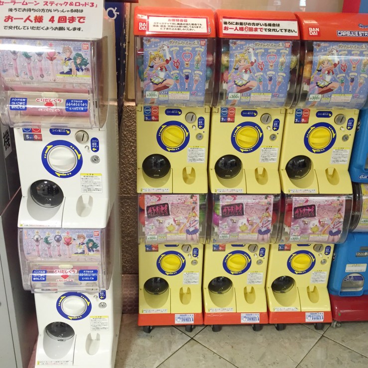 到Kiddyland就會看到一堆美戰放在入口區啦!有個小電視放戰士們的變身跟攻擊畫面。旁邊還有一堆扭蛋機讓你扭到家產散盡~