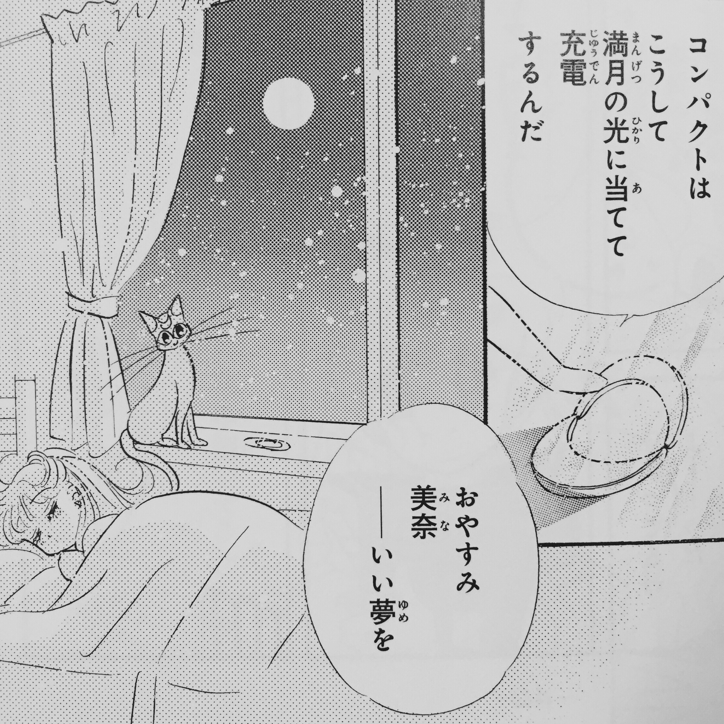 然後鏡盒是靠月光充電的喔!每天晚上睡覺時要把它打開來充電,如果忘記的話,鏡子會變黑色,就沒辦法反射光束來修理壞人了!(粗心的美奈就有過一次經驗…)