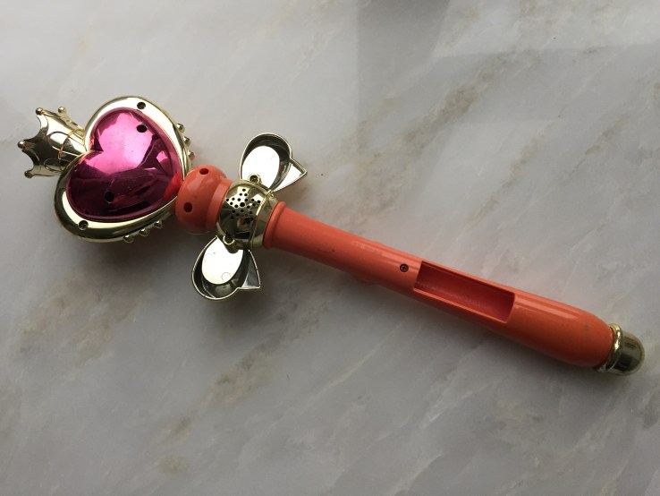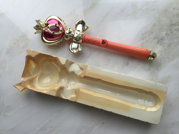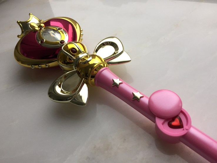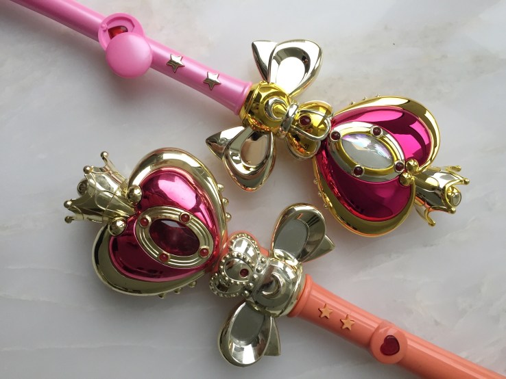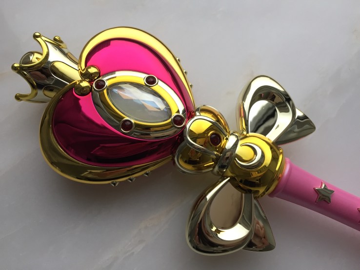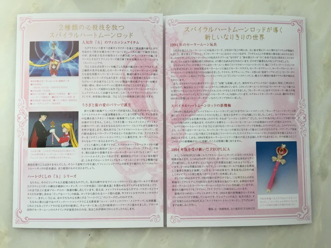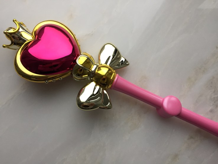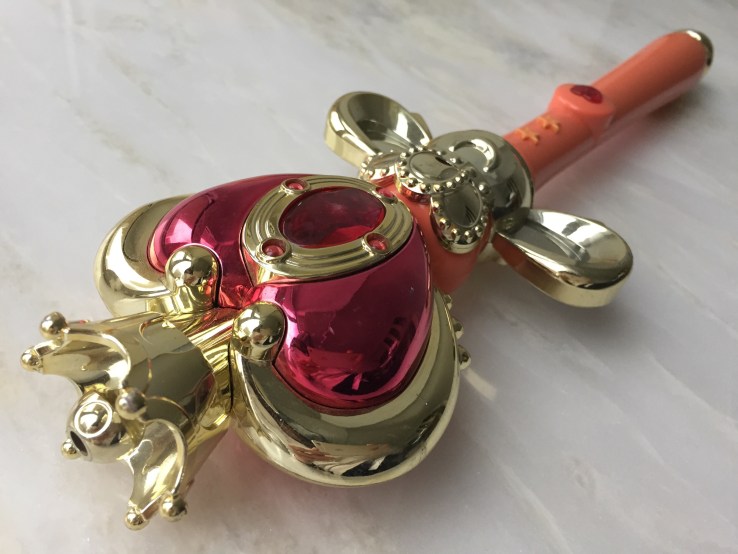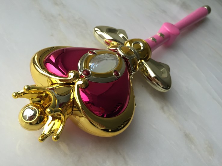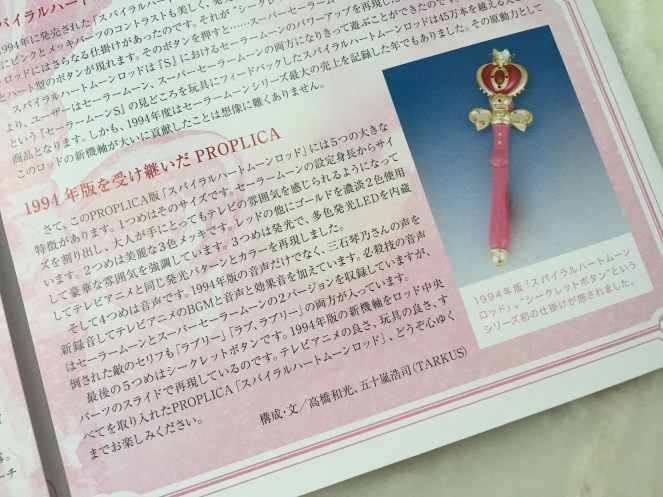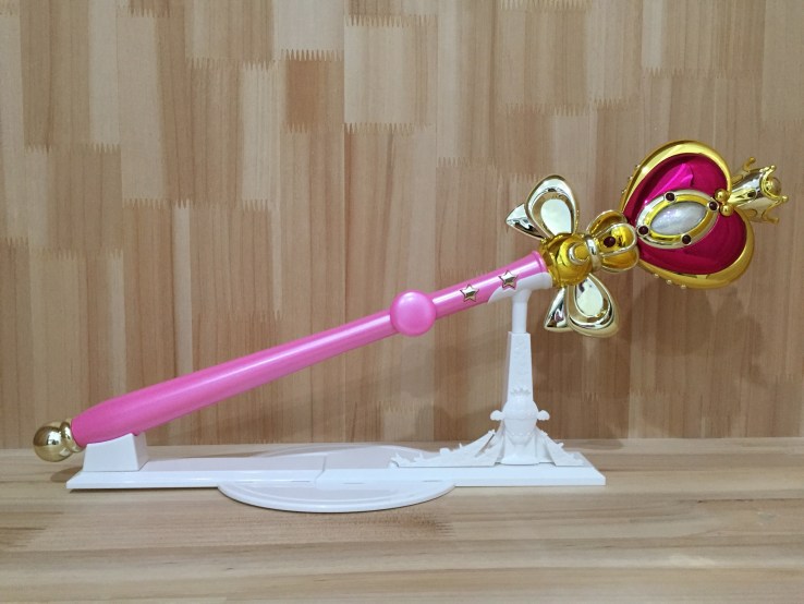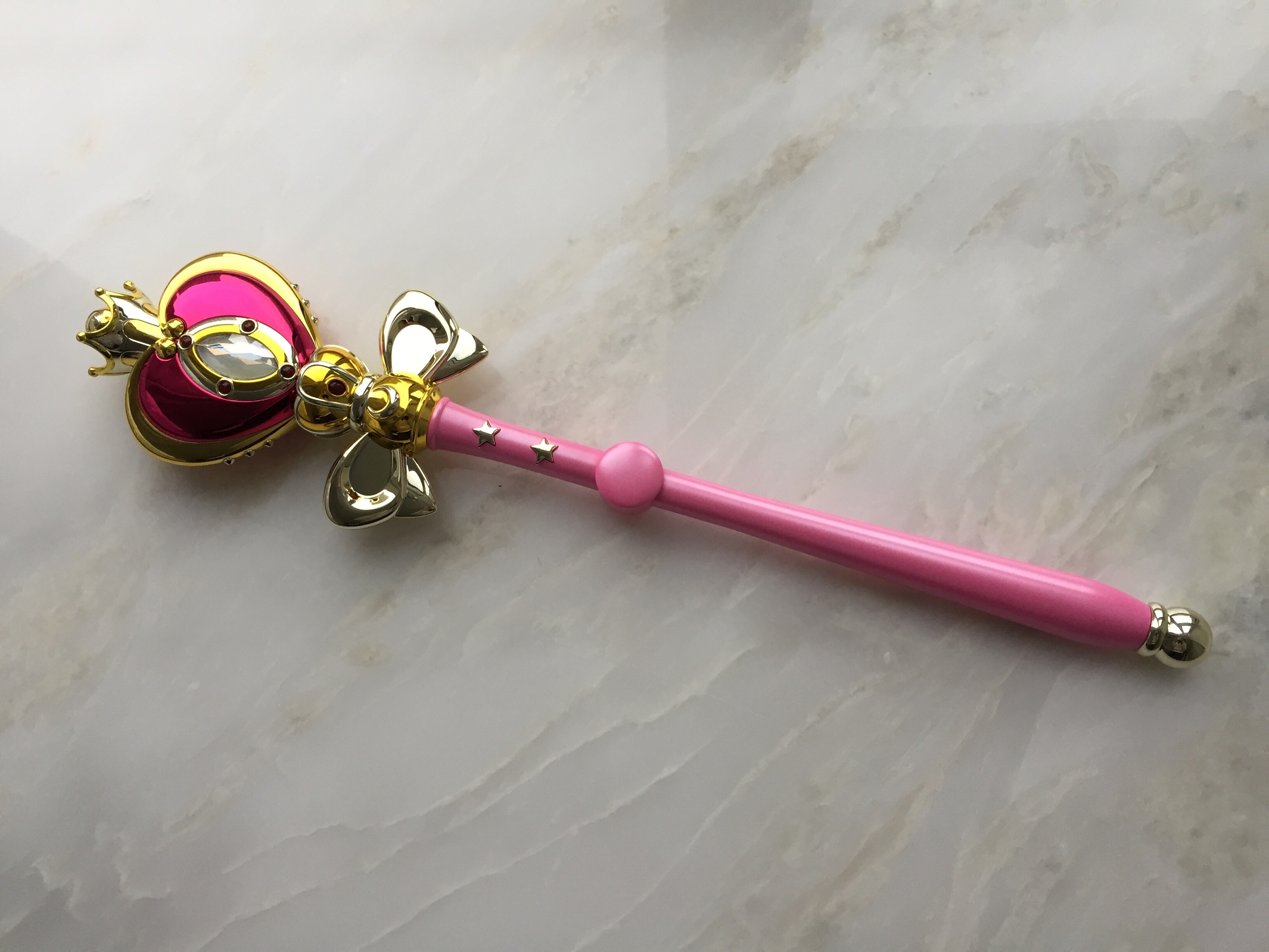而Proplica推出的第一項商品便是美少女戰士裡極具代表性的「新月棒」(moon stick)。後來又陸續推出了「女王權杖」(cutie moon rod)、「水晶星鏡盒」(crystal star compact)、以及今天要介紹的「螺旋心月杖」(spiral heart moon rod)。2016春天更會接著推出「聖杯」(rainbow moon chalice)和「宇宙心鏡盒」(cosmic heart compact)。