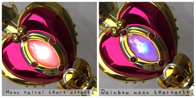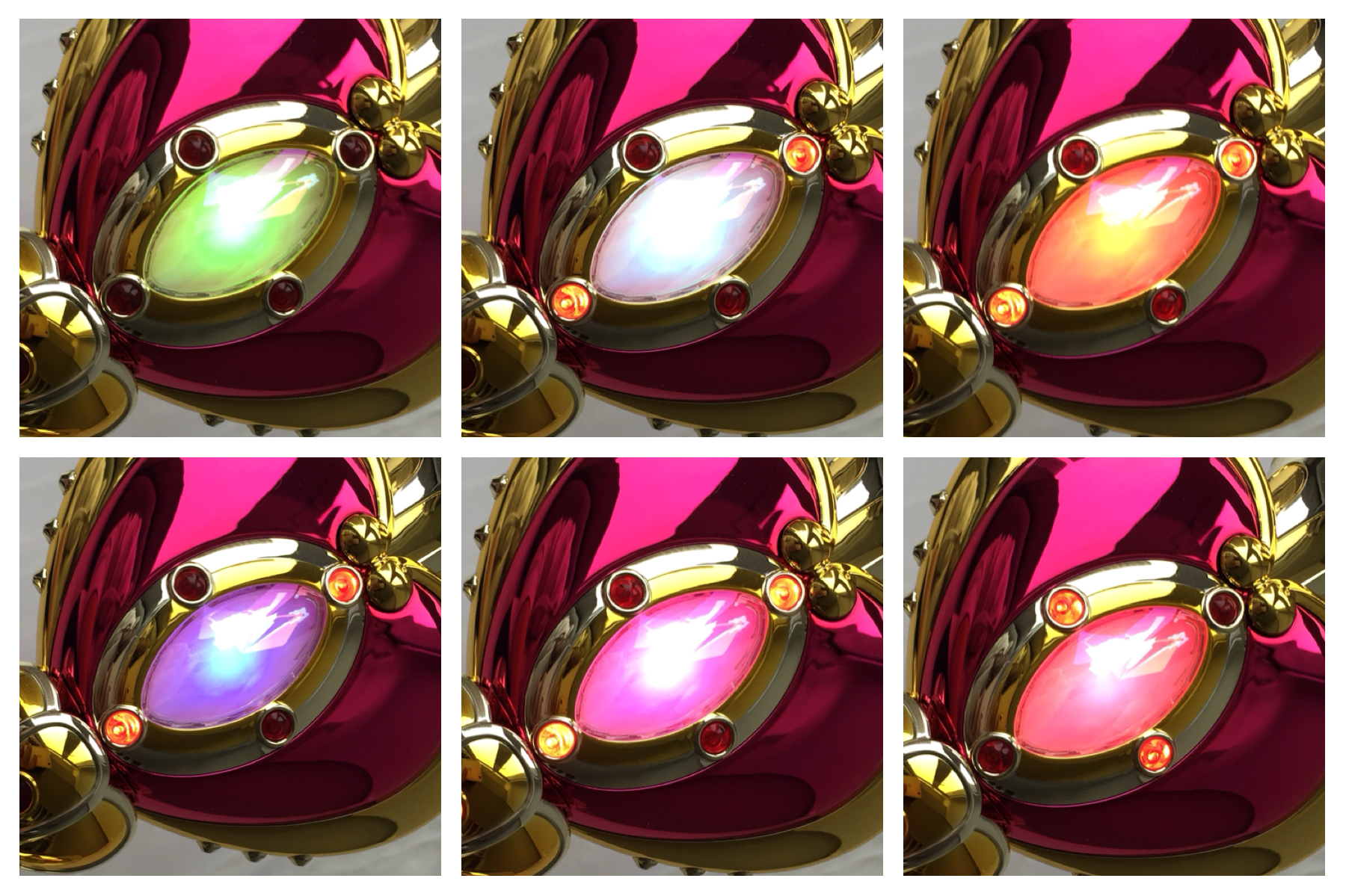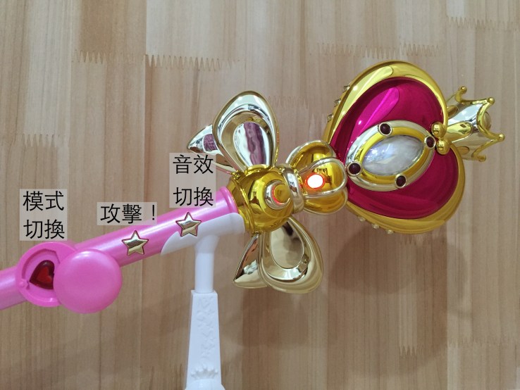 心月杖中間的LED閃燈可以發出六種顏色的光芒,不過這只有在升級成超級水手月亮後的第二種模式才會有(呼應彩虹的概念嘛)