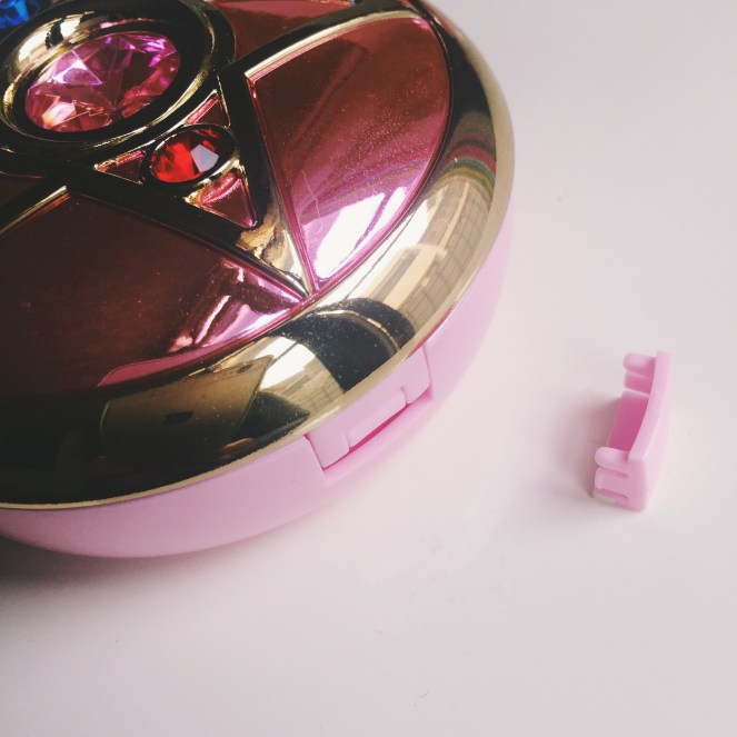 小兔在變身時,鏡盒的蓋子打開後會消失,Proplica也可以達成這效果,蓋子用力拔後可以脫離,就只剩下有銀水晶的那一半了。上面提到的小蓋子就是拔開後用來放進去補滿空隙的。
