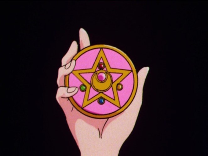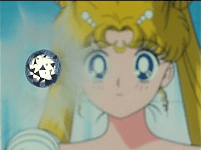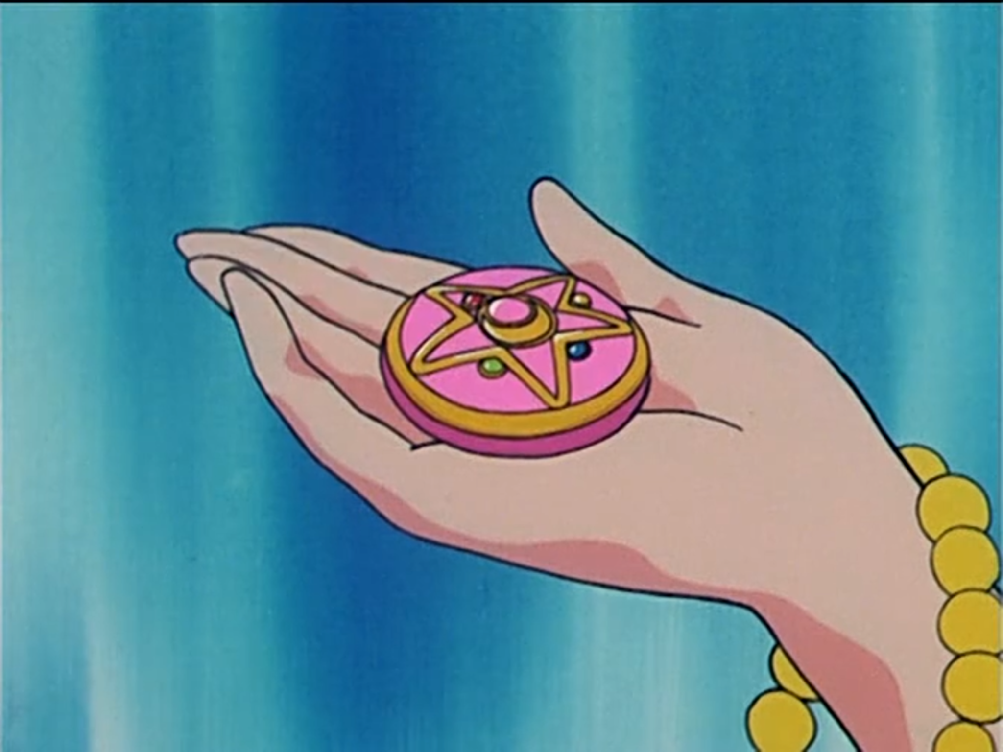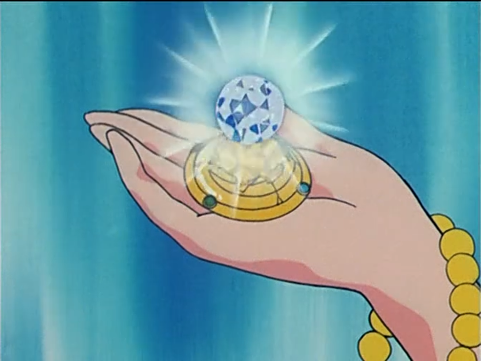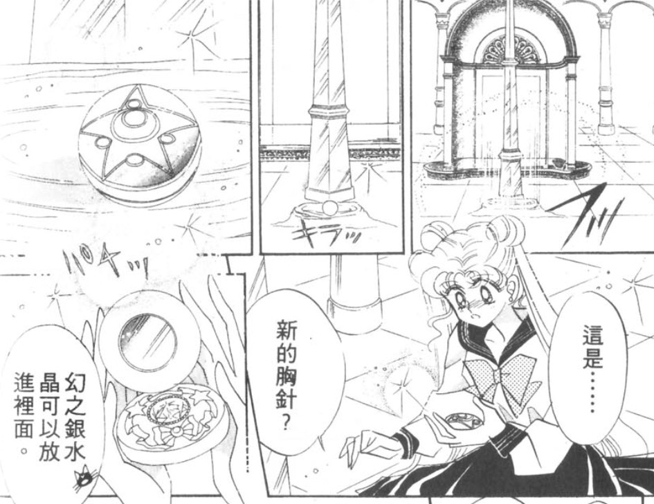 水晶之星在漫畫和舊版動畫裡出現的方式差不多,都是西蕾妮蒂女王在小兔的初代變身胸針壞掉後送給她的。