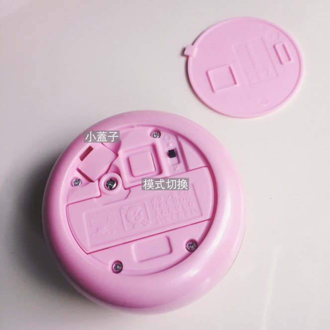 對準新月按下去,蓋子就會打開,露出裡面的電池槽跟模式切換按鈕。