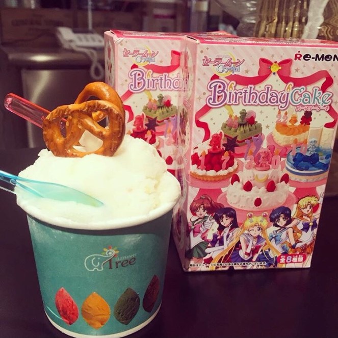 上個月約會時逛到新光三越的超市,瞄到有在賣這款re-ment的birthday cake系列,這是re-ment出的第四款美戰產品囉~我之前沒訂…因為覺得這次的蛋糕系列沒有很特別,不過看到它們擺在眼前…就突然很想要…我伴說送我吧~我就歡天喜地的拿去結帳了~(喔耶!)