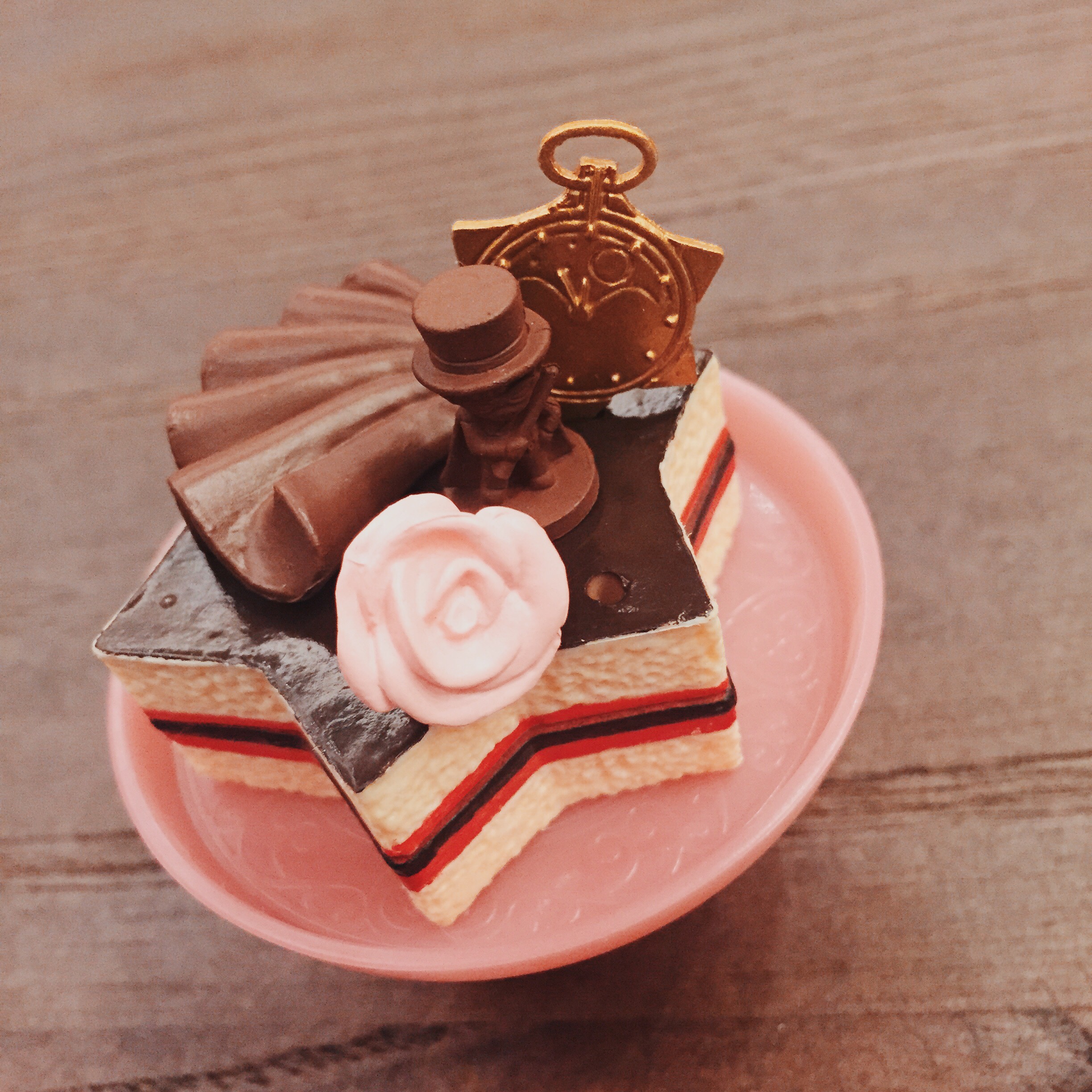 阿衛的這款圖片看起來很不賴,但實體的巧克力波浪片做得不是很精緻,而且巧克力阿衛真的太黑了,但看不清楚長怎樣,不過我喜歡做成星空懷錶外型的金鋁片裝飾~