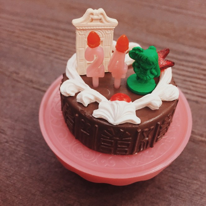上個月約會時逛到新光三越的超市,瞄到有在賣這款re-ment的birthday cake系列,這是re-ment出的第四款美戰產品囉~我之前沒訂…因為覺得這次的蛋糕系列沒有很特別,不過看到它們擺在眼前…就突然很想要…我伴說送我吧~我就歡天喜地的拿去結帳了~(喔耶!)