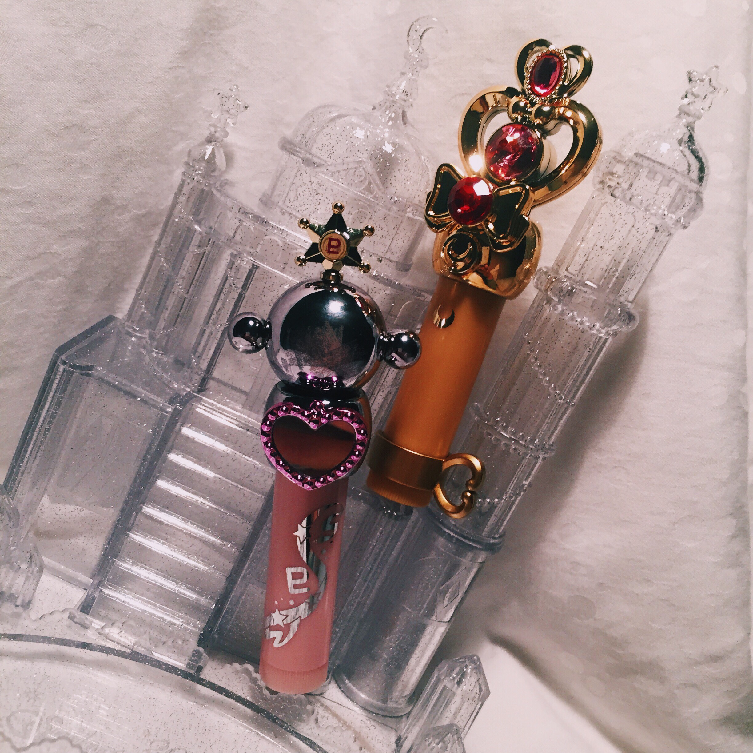 兩套護唇膏都是美戰20週年慶中化妝品系列"Miracle Romance"的商品。其實冥王星這套已經是第三套了,前面除了天海組外,最一開始的其實是水手月亮的新月棒款。
