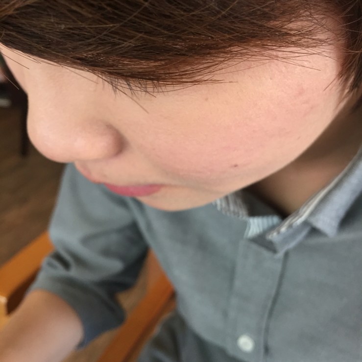 嗯…好啦,是有比較明顯一點,可是還是很淡啊!幾乎看不到,就像天氣熱或剛運動完的紅暈。