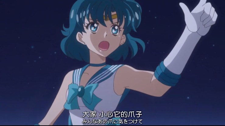 戰鬥的節奏跟上集一樣不拖泥帶水,一開始水星用電腦分析後,就以很有氣勢的手勢叫大家要小心妖魔的爪子!