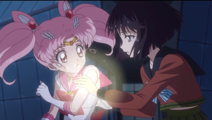 水手月亮的新攻擊也在這集露面了,我也沒有很喜歡,第一是因為直接採用舊版的動作,肢體動作和流暢度卻沒有舊版好。第二是最後的愛心甚至比舊版的還要…繽紛閃亮少女味很多…