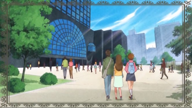 我想找的就是這個大玻璃窗,漫畫、舊動畫、新動畫中都有出現的無限學園的正門口。