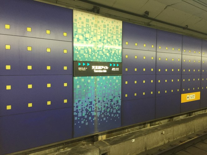 前往天王洲島的方式有兩種,一個是搭東京單軌電車,一個是搭東京臨海高速鐵路前往。我這次住在地鐵淺草線的五反田站附近,進到站內先搭到大崎站再轉臨海高速鐵路,坐到天王洲島站就到了,轉乘的指標很清楚。