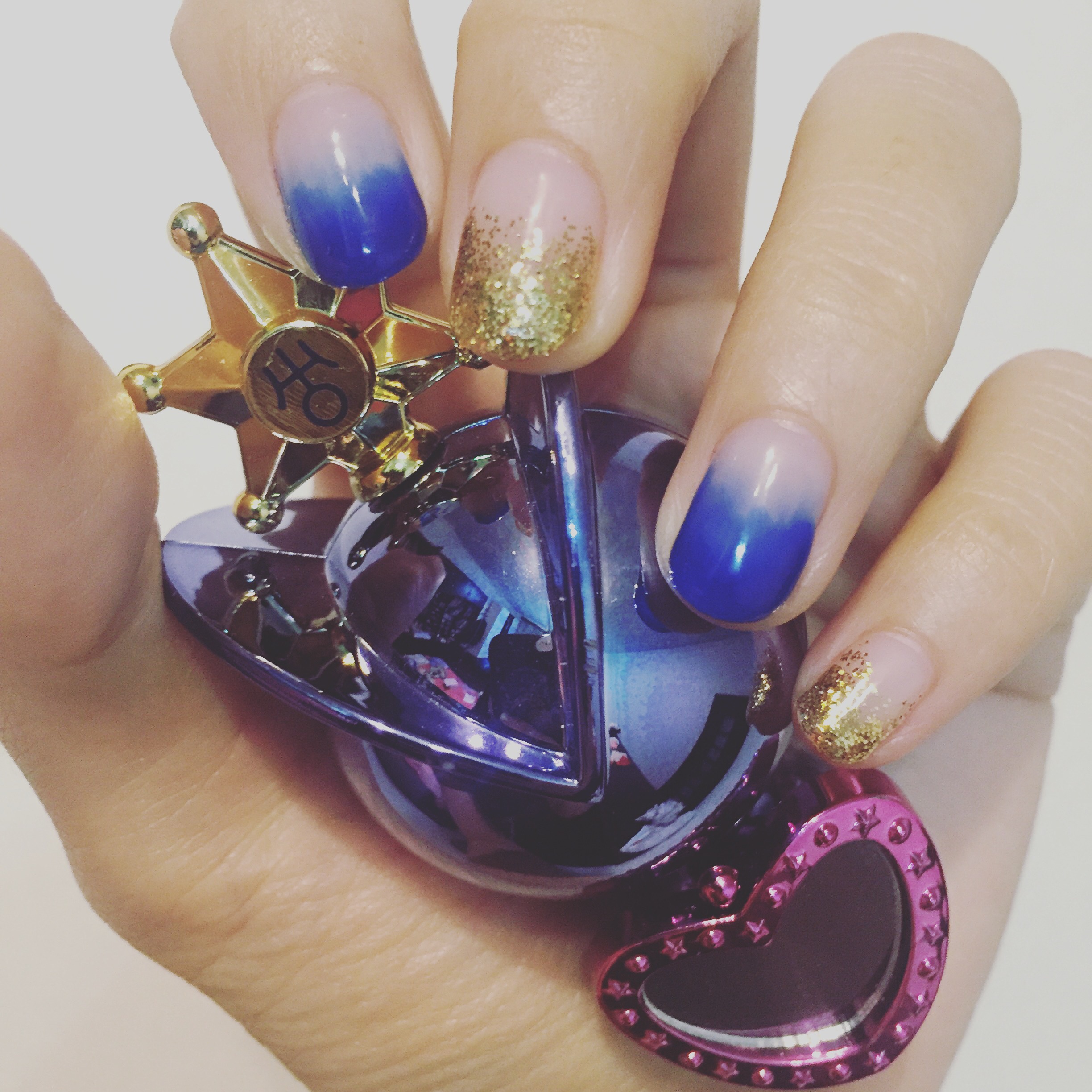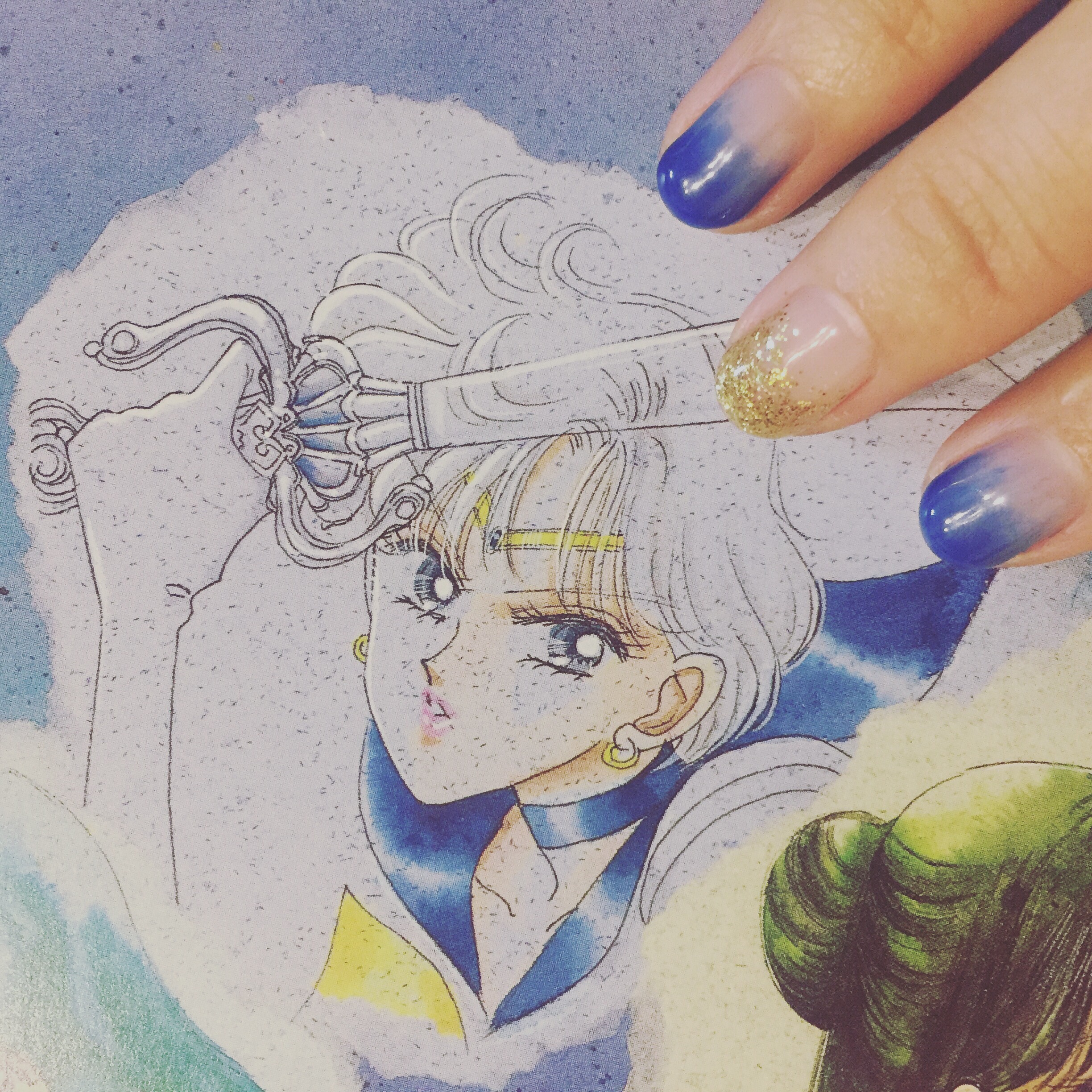 真的覺得阿遙的這個配色很好看、很搶眼。這次來東京前也用她的配色做了指甲。其實本來想做寶藍跟海綠的,想要用個遙滿主題,不過後來覺得金色搭起來更好看,就變成阿遙only了XD
