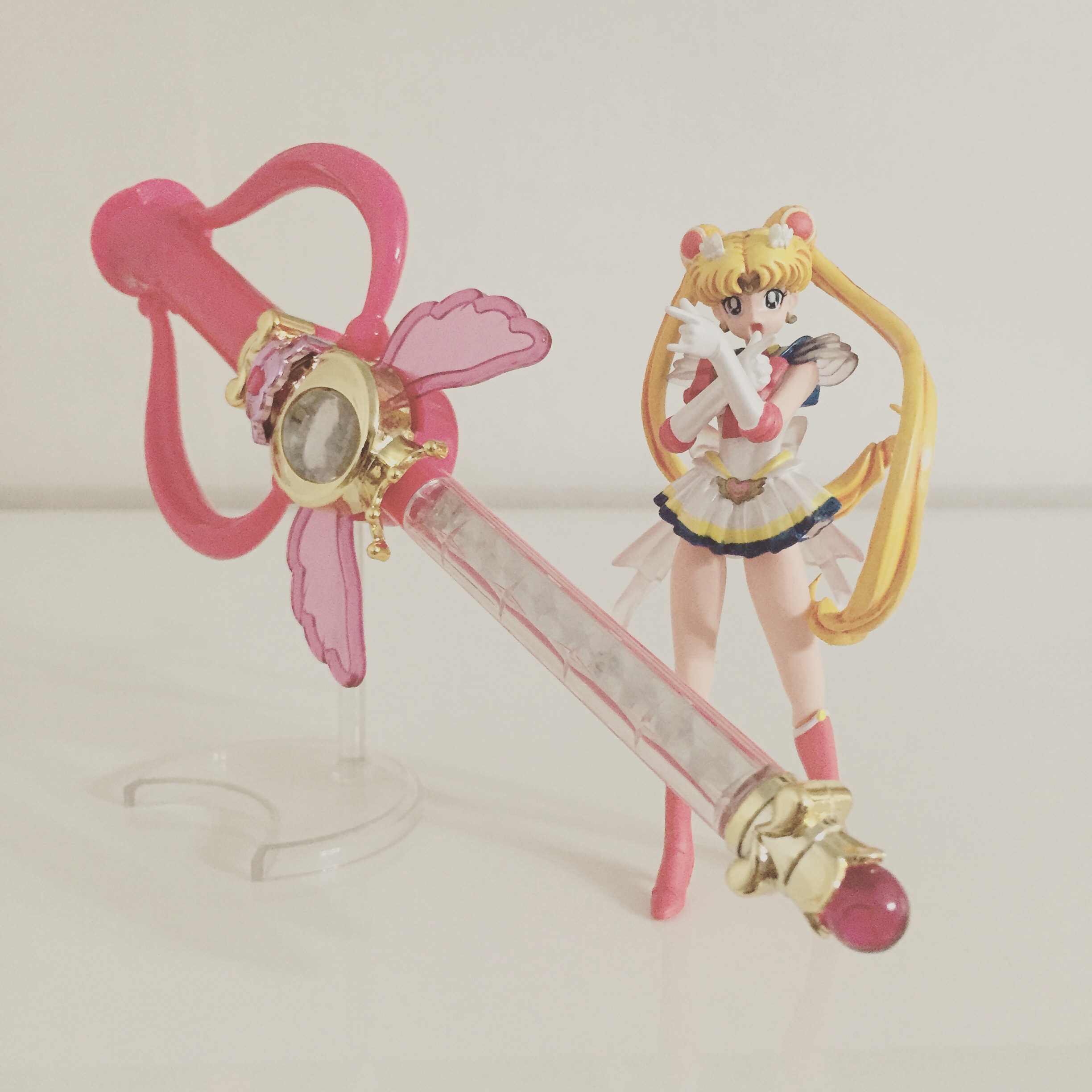 扭蛋有個透明立架可以做展示,快快,請出超級水手月亮!這隻我一開驚為天人!氣勢怎麼這麼好!看看那眼神!那頭髮線條!還有長腿!!