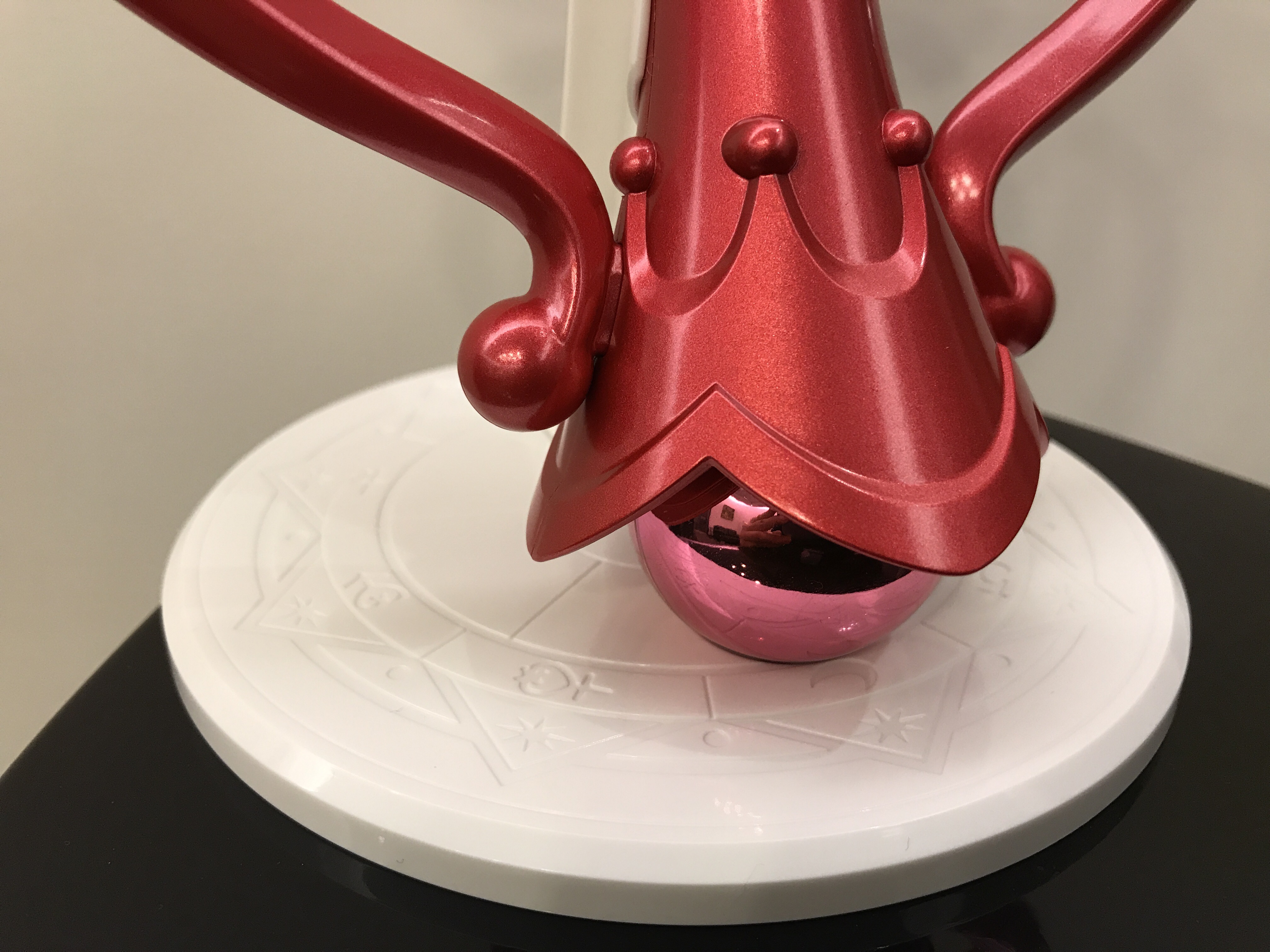 打開來後會看到萬花筒跟支架,這次的支架是可以直立的,之前的女王權杖跟螺旋杖是斜橫著放的,如果是會擺出來展示的朋友應該覺得這次設計蠻不錯(?),因爲比較省空間(其實可能也沒有XD 直立起來很高,搞不好更放不進去櫃子)