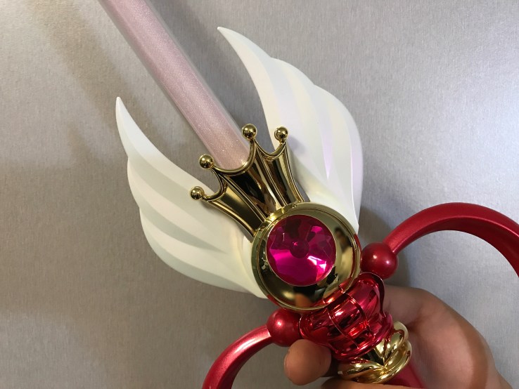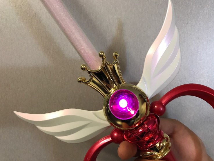 而且是兩段式,也就是按第一下、會跑出舊版動畫中,水手月亮拿到萬花筒、準備攻擊的配樂,再按第二下,攻擊的聲效才會出來,其中兩個模式還有支援到第三段攻擊的配樂,是一支可以隨心所欲想什麼時候攻擊再攻擊的武器。