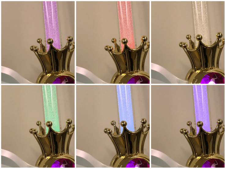 不知道大家有沒有看過以前老玩具的萬花筒,它的亮法是會有一顆一顆光球往頂端跑的,我覺得那樣比較動感,Proplica是採漸亮、漸暗,搭配六種不同顏色的光,這樣的發亮法。