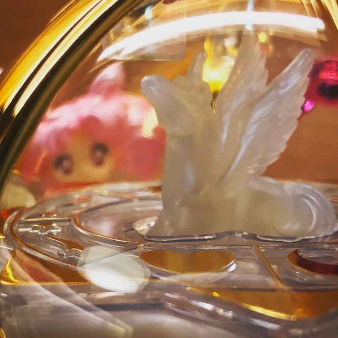 透明的球體裡可以看到有隻小天馬坐在裡面展翅。