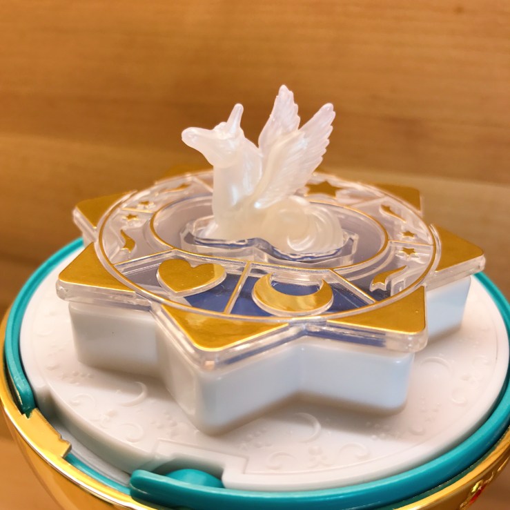 透明的球體裡可以看到有隻小天馬坐在裡面展翅。
