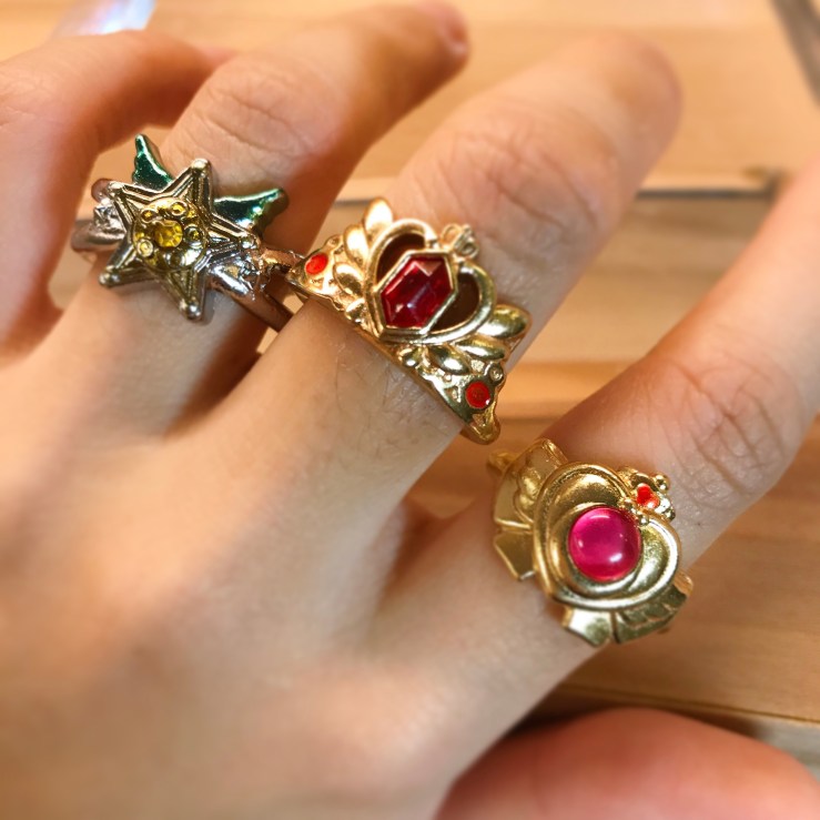 不過這套扭蛋有個好處就是它的戒圍非——常——大——我的手指胖胖的,指關節也很粗,戴上去還鬆鬆的真是感動XD