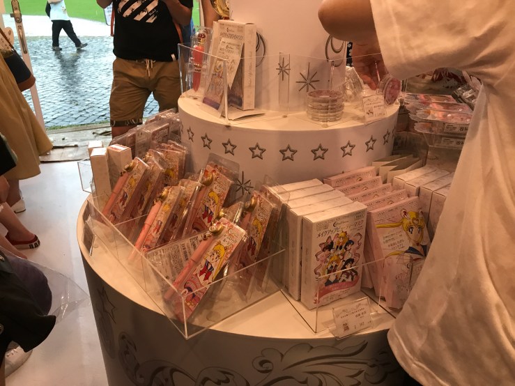 有聖杯腮紅、新月棒跟螺旋杖的腮紅刷、變身器的粉餅跟蜜粉、通訊器護唇膏、面膜、眼線筆口紅等等。