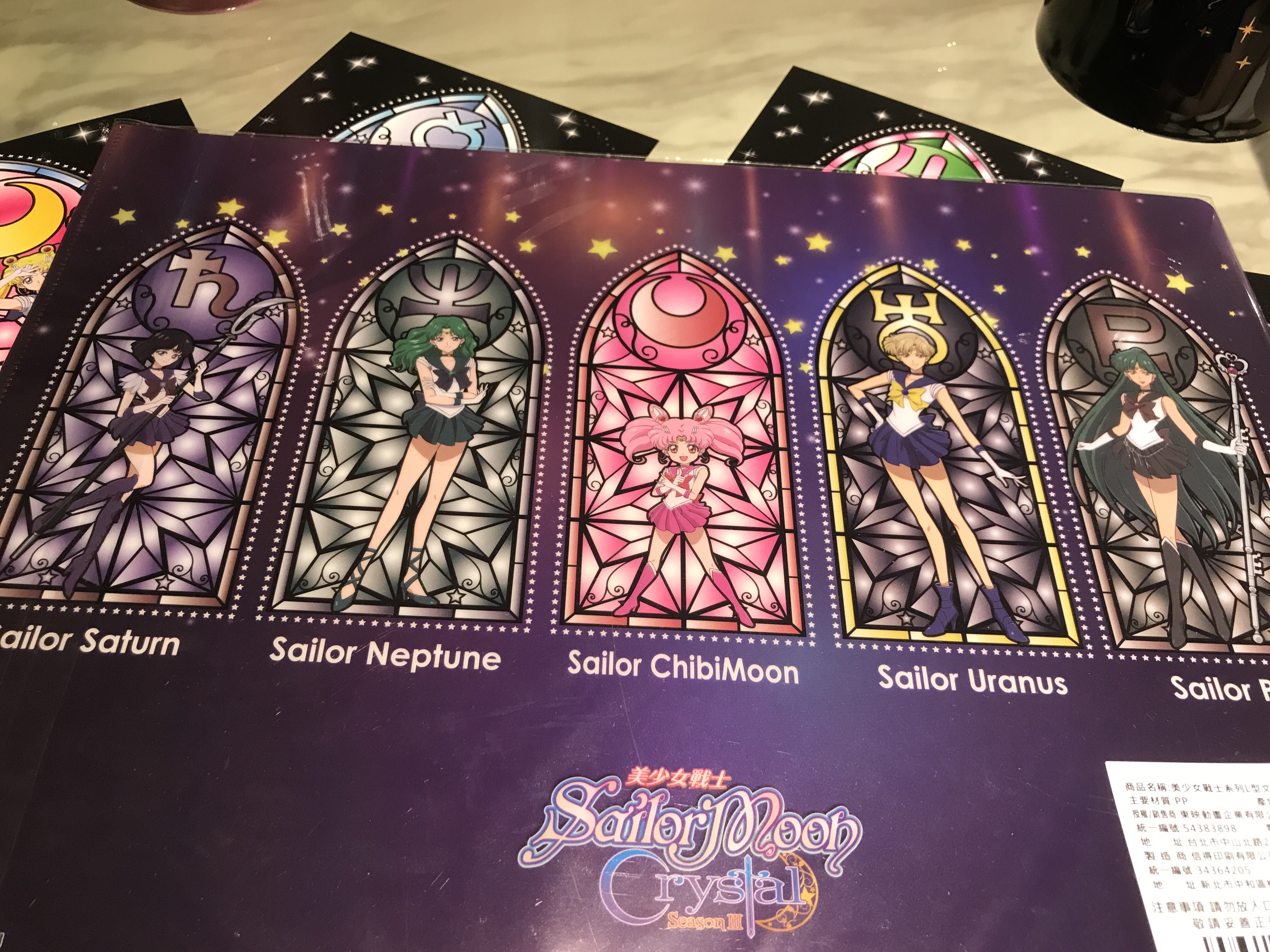 結帳櫃檯旁邊的牆上有Crystal三期的人設圖,可惜太擠了,前面也有放一些貨物,沒辦法好好欣賞