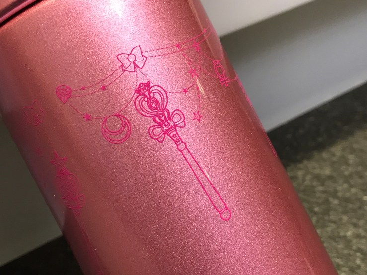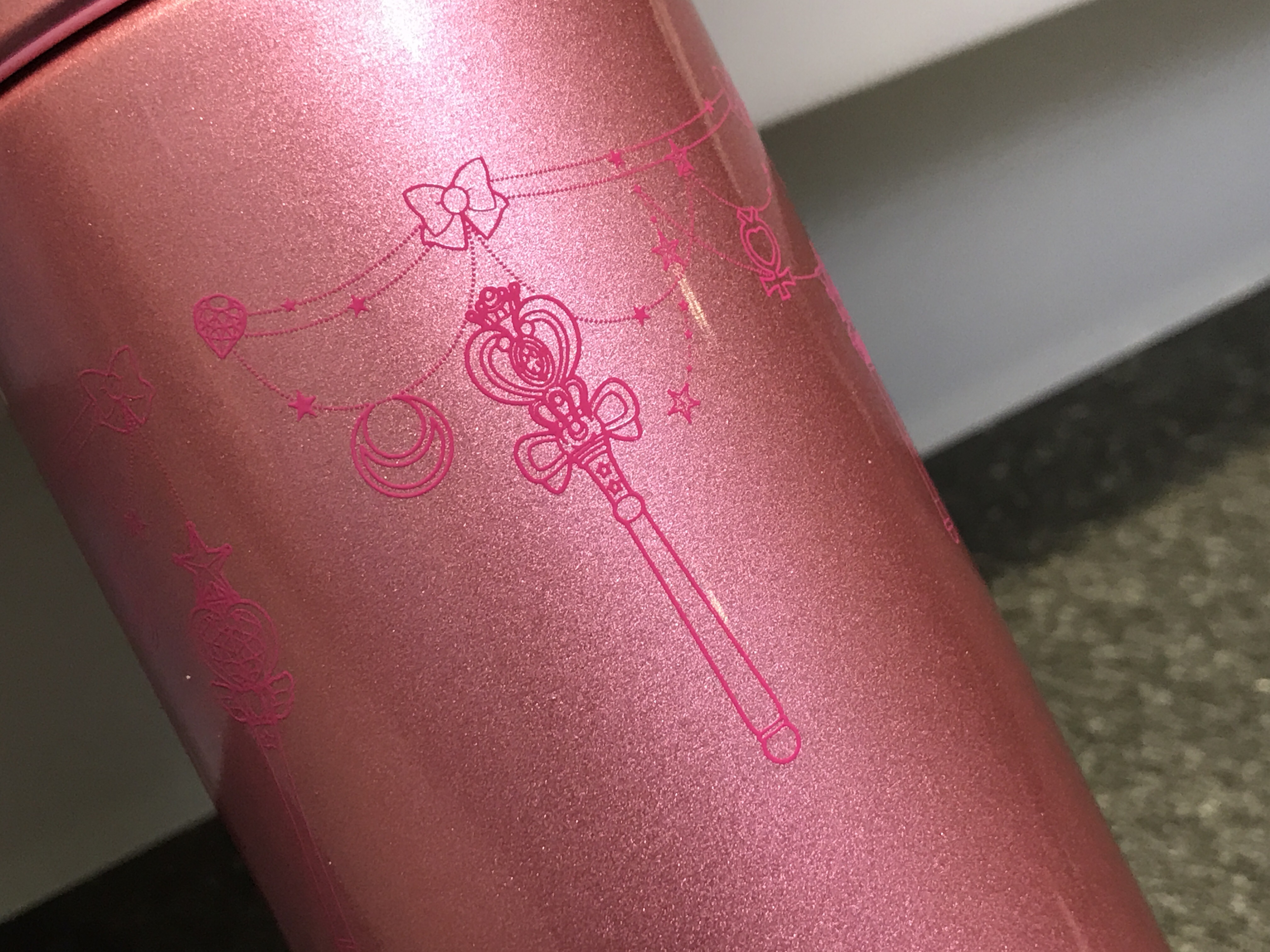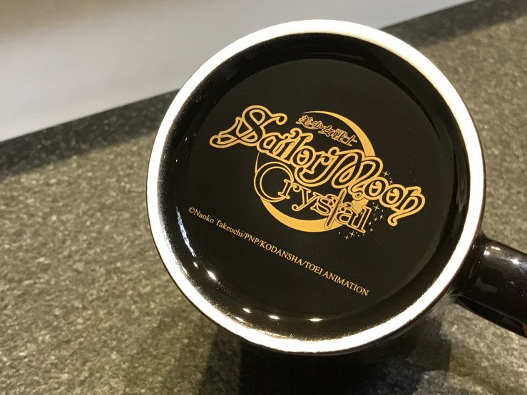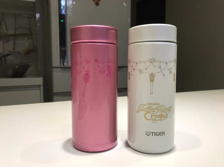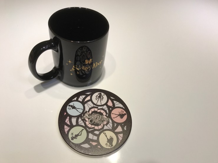 馬克杯有兩款,單價499元,箱子的外面會貼圖案的款式。一款是變身棒跟武器,另一款有水手月亮的剪影。