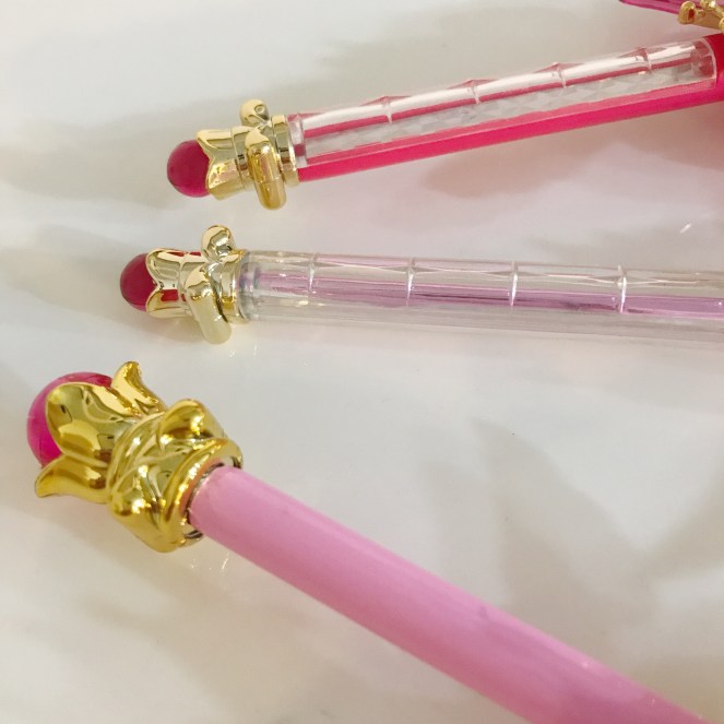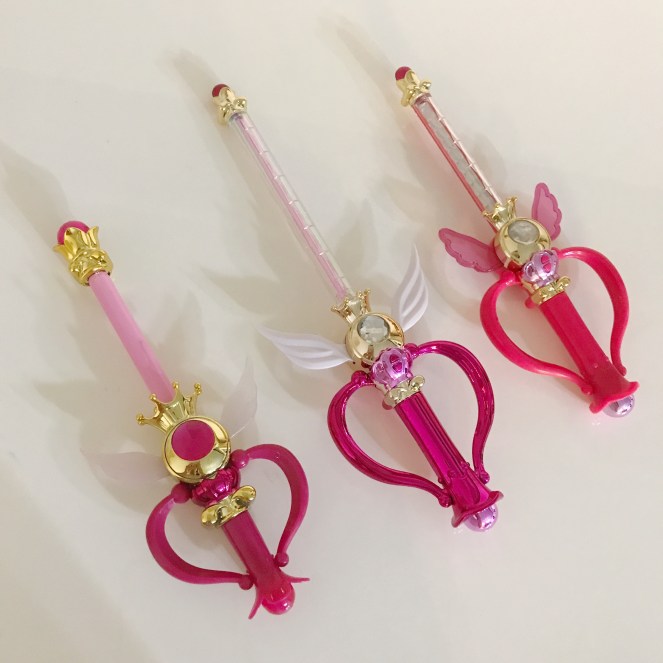 扭蛋的棒體是塑膠的,中間的是限定盒版,照片中最左邊的新月棒是去年在東京舉辦的美少女戰士展的限定商品。