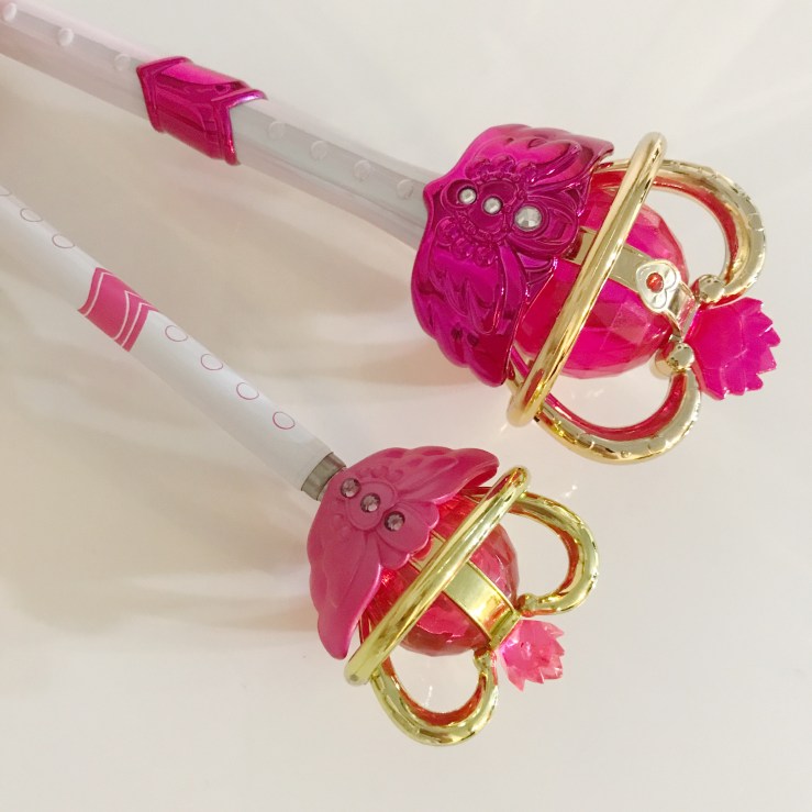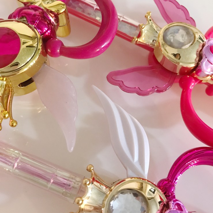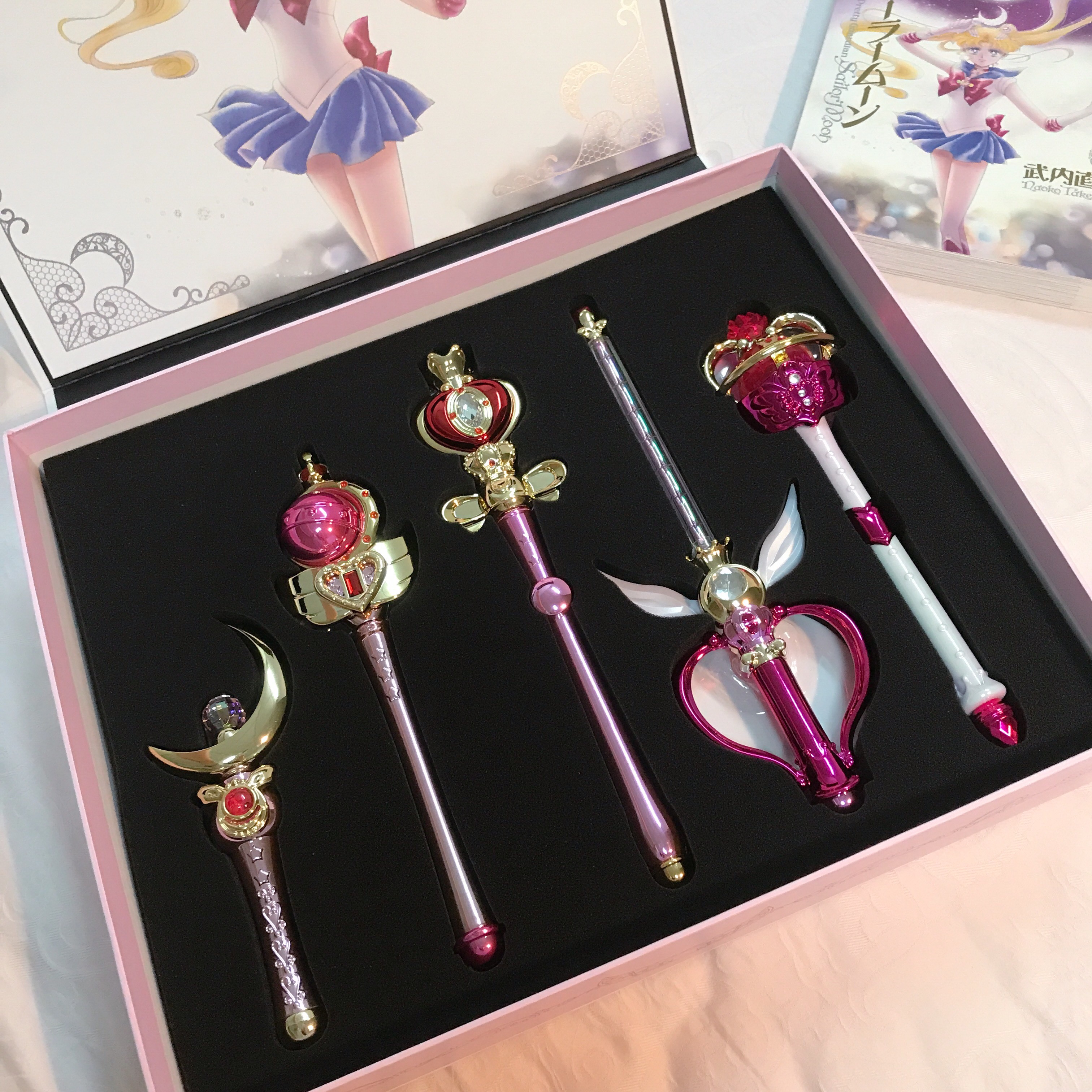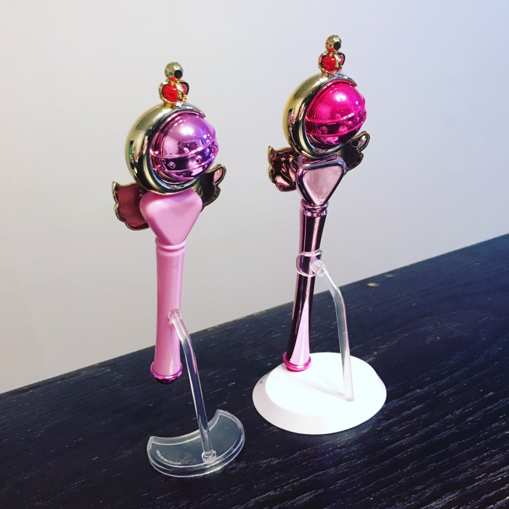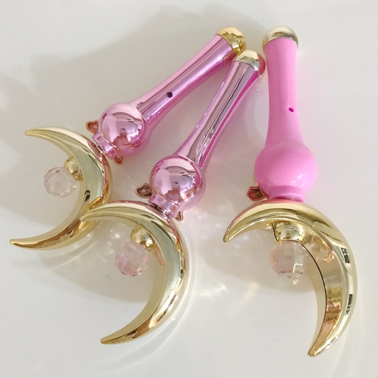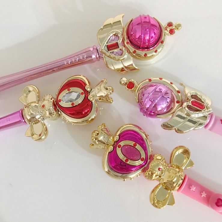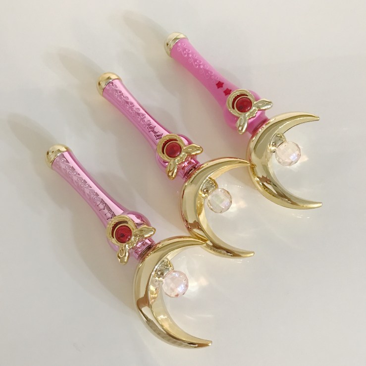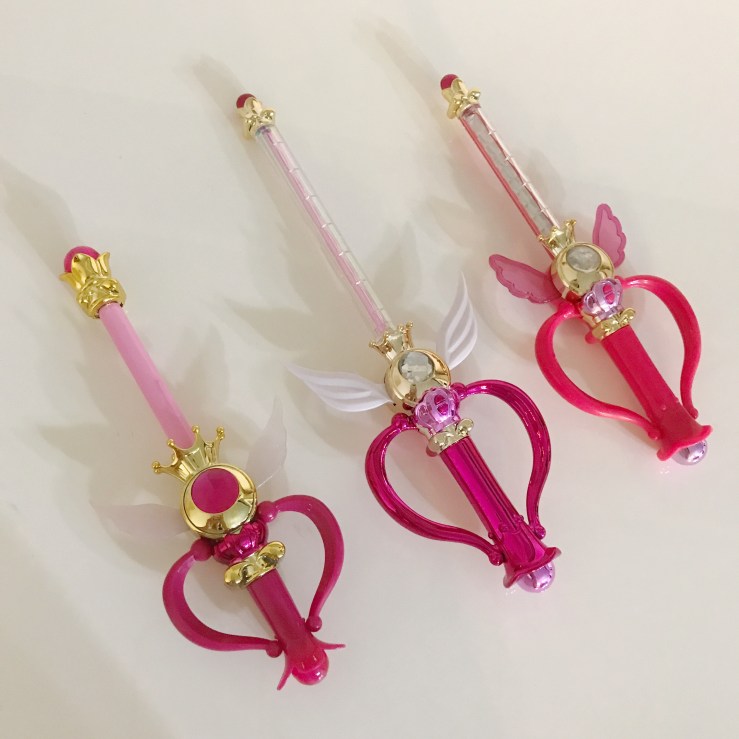 扭蛋的棒體是塑膠的,中間的是限定盒版,照片中最左邊的新月棒是去年在東京舉辦的美少女戰士展的限定商品。